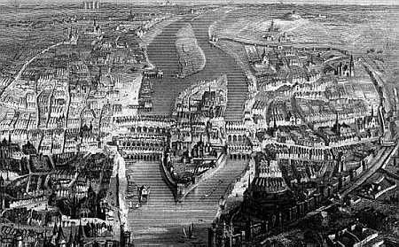 - A gauche, la ville marchande, la plus animée (rive droite).