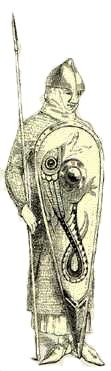 - L’arc : Arme qui date du néolithique, il s’agit d’un bâton de bois courbé avec une corde liée aux extrémités. L’arc composite fut une avancée majeure, améliorée au niveau de la corne et des nerfs. Les flèches devaient avoir une trajectoire stable pour être efficace, généralement peu coûteuses, elles étaient produites en quantité. La taille des flèches dépendait de la difficulté à bander l’arc. L’archer était vêtu légèrement pour pouvoir se mouvoir plus facilement, pour sa survie, il devait disposer d’une arme supplémentaire (couteau, épée).