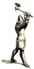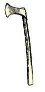 - La hache : Les peuplades germaniques furent les premiers à utiliser la hache (outil) au combat. Les Francs utilisaient la francisque (hache courte à une lame), qu’ils pouvaient lancer à 3-4 mètres pour ouvrir le combat. Ils utilisèrent plus tard la hache Danoise, longue (1m50) tenue à deux mains. Au XIVe siècle, des haches nouvelles apparurent (hallebarde), pouvant frapper de taille et d’estoc (tranchant et pointe).