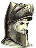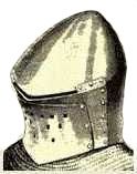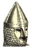| Casque conique avec protection nasale (XIe siècle) | Heaume cylindrique à dessus plat (XIIe siècle) | Heaume à bassinet (XIIe siècle) | Heaume à "tête de crapaud" (XIVe siècle) |